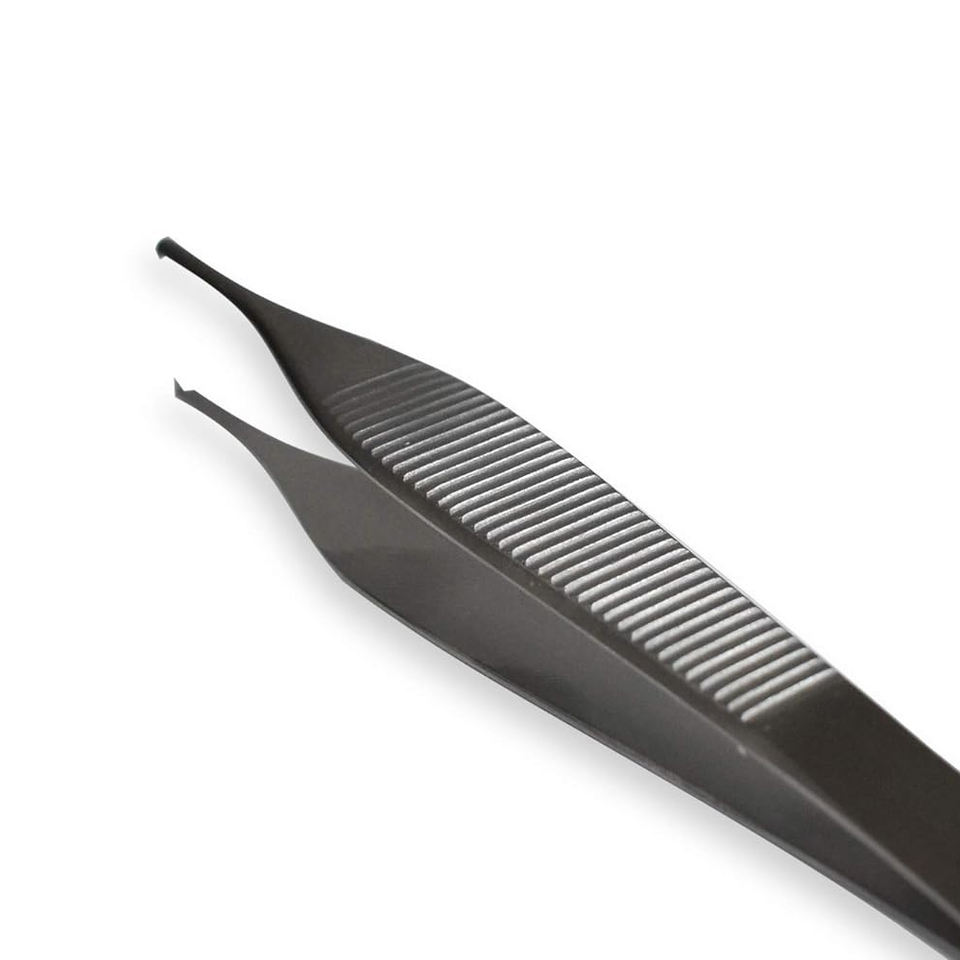 Fórceps de tejido marrón Adson de alta precisión, puntas dentadas finas delicadas, uso quirúrgico, instrumento médico de acero inoxidable TC 7x7 dientes