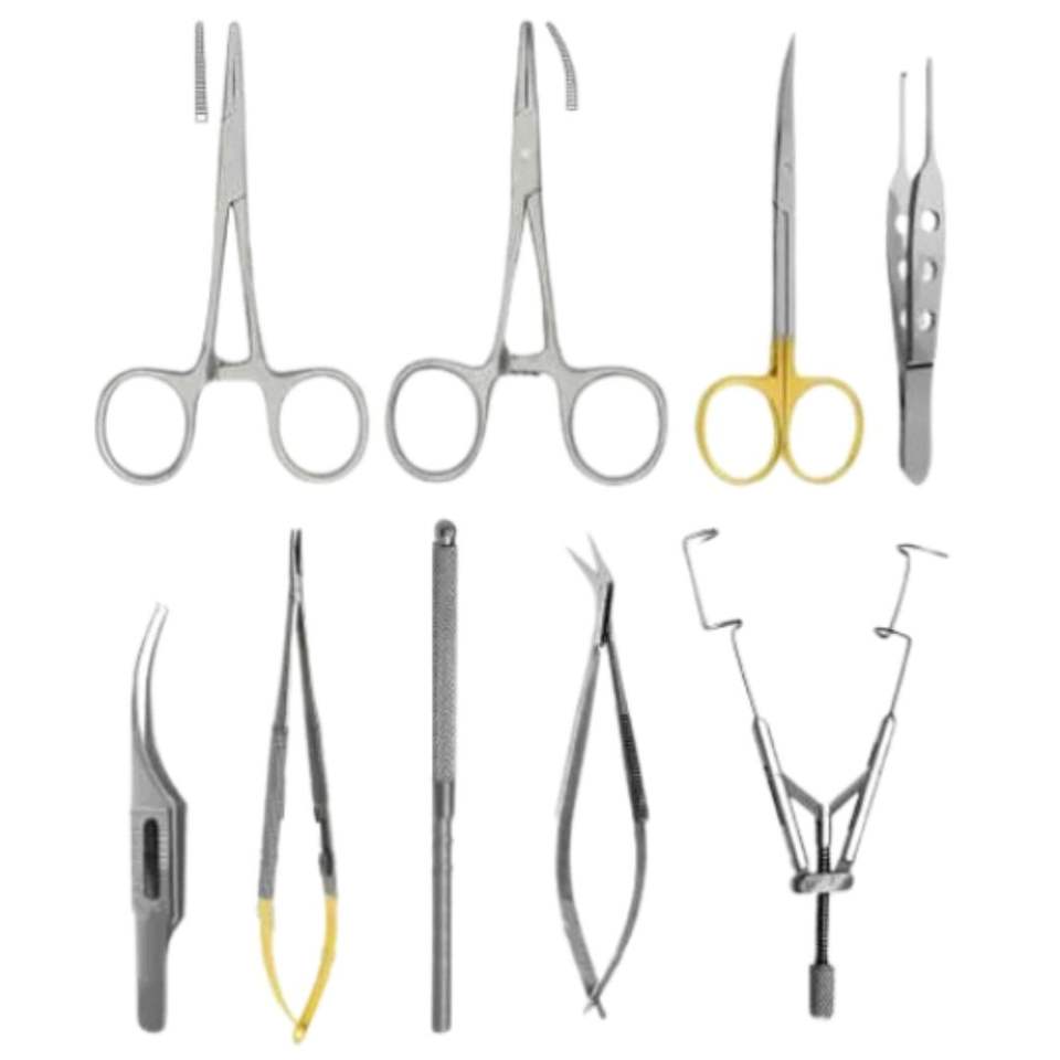 Instrumentos médicos de alta calidad, 9 Uds., Kit de Ojos de animales grandes, instrumentos quirúrgicos veterinarios, procedimientos oftálmicos bovinos equinos