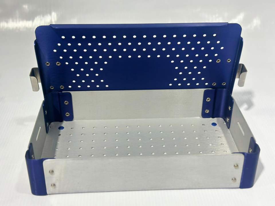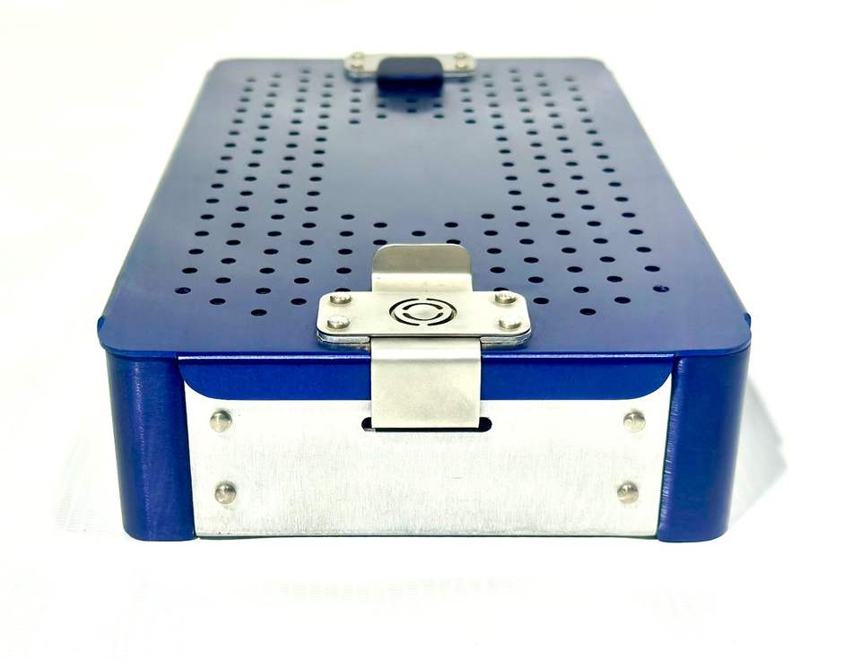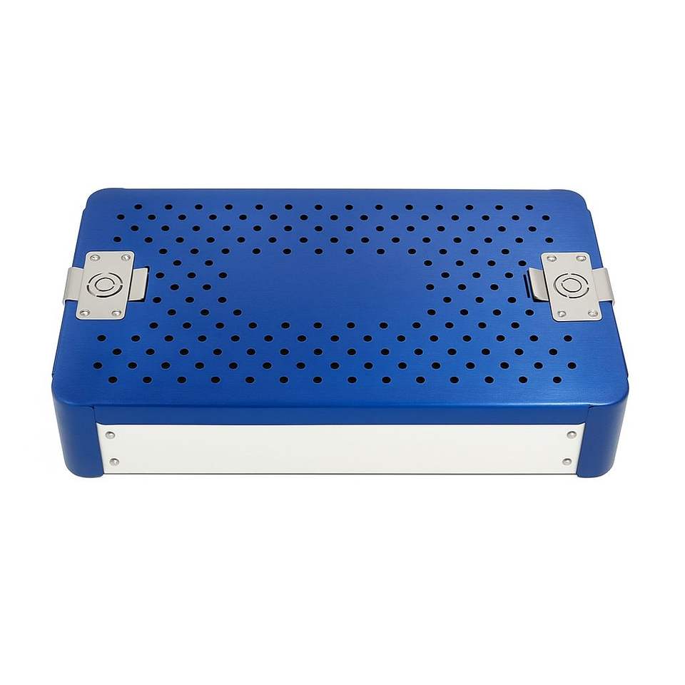 Caja de instrumentos para autoclave médica, contenedor de esterilización de aluminio con bandeja de inserción de silicona y tapa perforada, fuente de alimentación manual