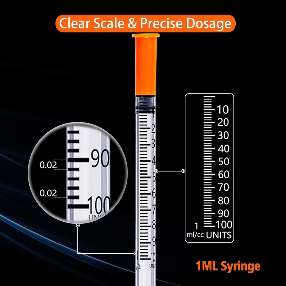 Jeringa de Insulina Desechable Médica de 0.3ml 0.5ml 1ml 28g 29g 30g 31g 32g 33g para Diabéticos, 8mm 12mm para Uso Veterinario