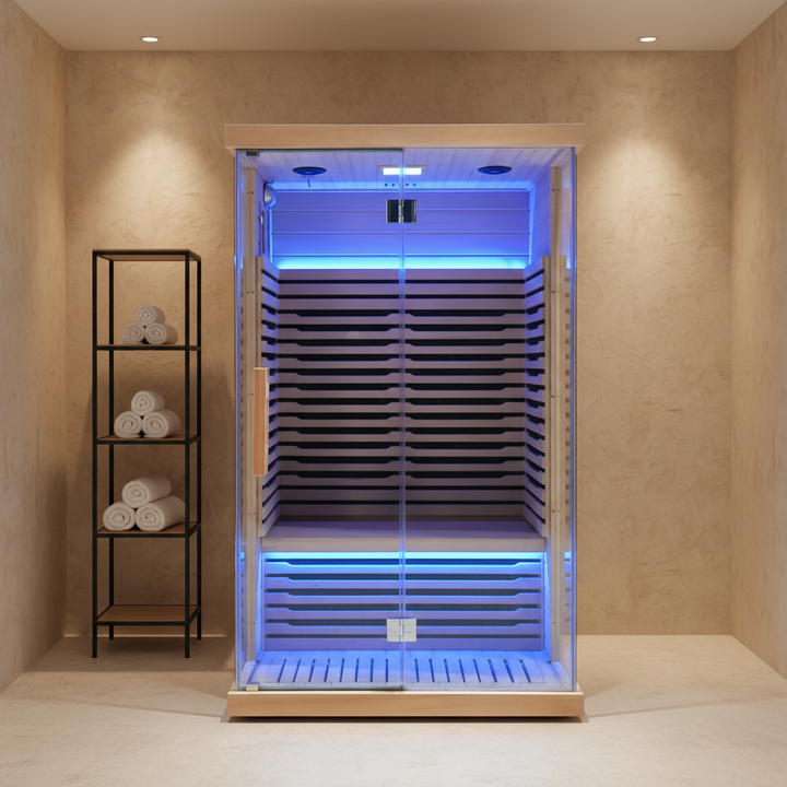 Sauna Infrarroja de Grado Médico Personalizada, Sauna Infrarroja Seca Interior de Bajo EMF con Terapia de Luz Roja y Cromoterapia