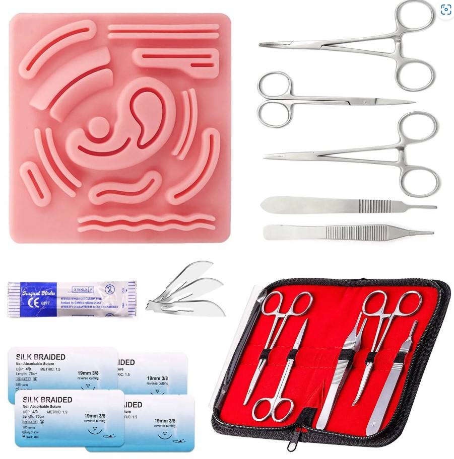 Kit de entrenamiento de sutura para estudiantes de medicina (5 piezas) Fuente de alimentación manual Incluye actualización 14 Almohadilla de sutura para heridas precortadas