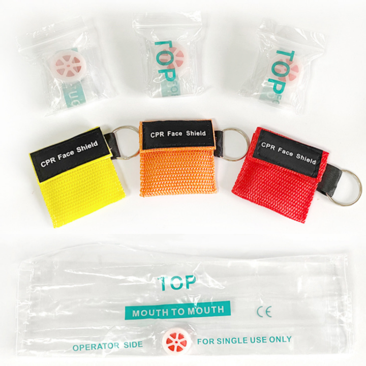Proveedor médico Botiquín de primeros auxilios Desechable CPR Face Shield Life Key Llavero para entrenamiento Máscara de oxígeno Barrera de respiración libre