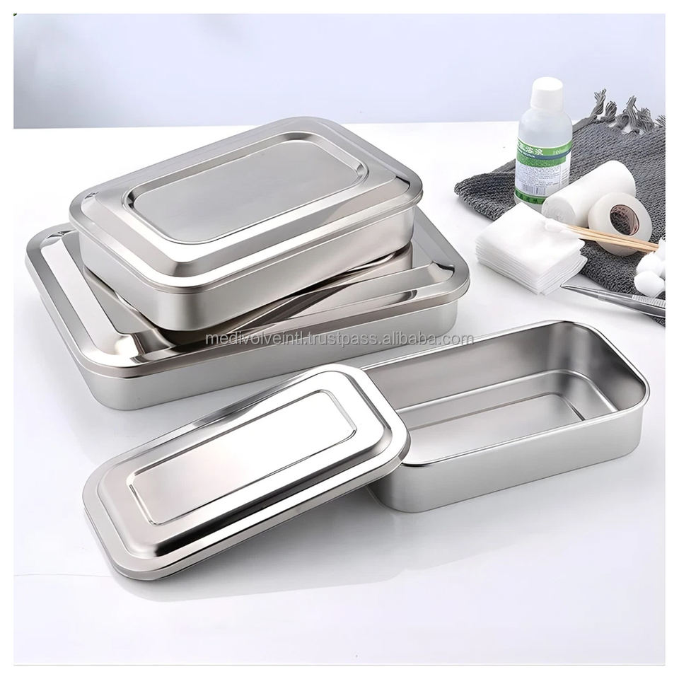 Caja de Almacenamiento de Instrumentos Quirúrgicos Médicos, Estuche de Instrumentos Dentales de Acero Inoxidable con Tapa, Certificación CE ISO, Proveedor OEM ODM, Manual