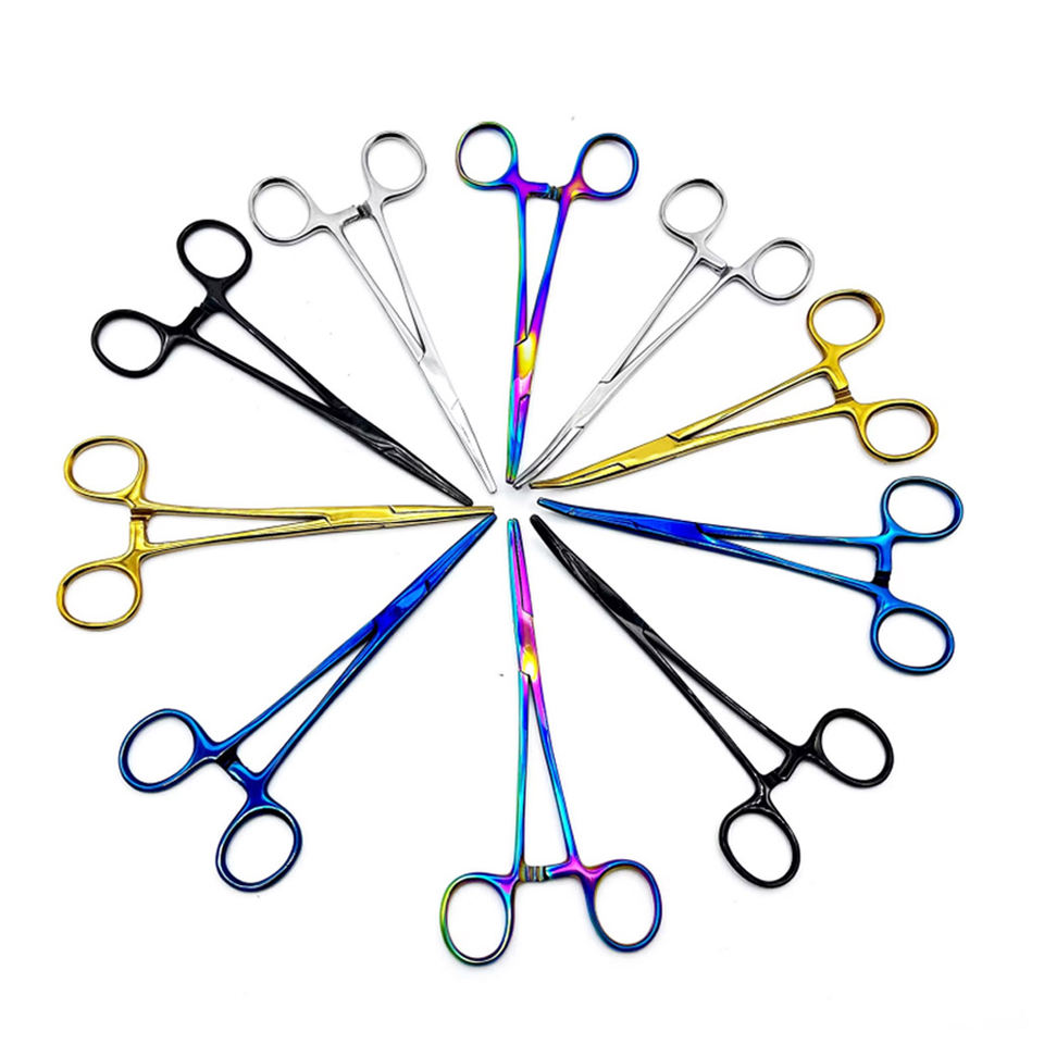 Pinzas Hemostáticas Quirúrgicas Médicas con Bloqueo, Pinza Curva para Suturas, Kit Reutilizable Manual