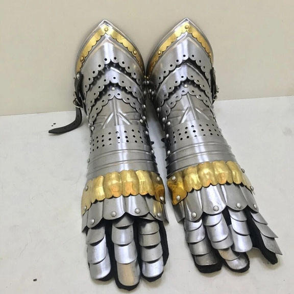 Guantes de Armadura Funcionales Personalizados de Acero Plateado Estilo Cruzado Medieval, Pulidos para Recreación de Combate, Coleccionables de Arte
