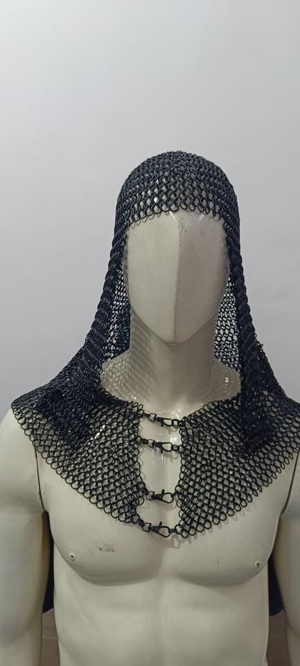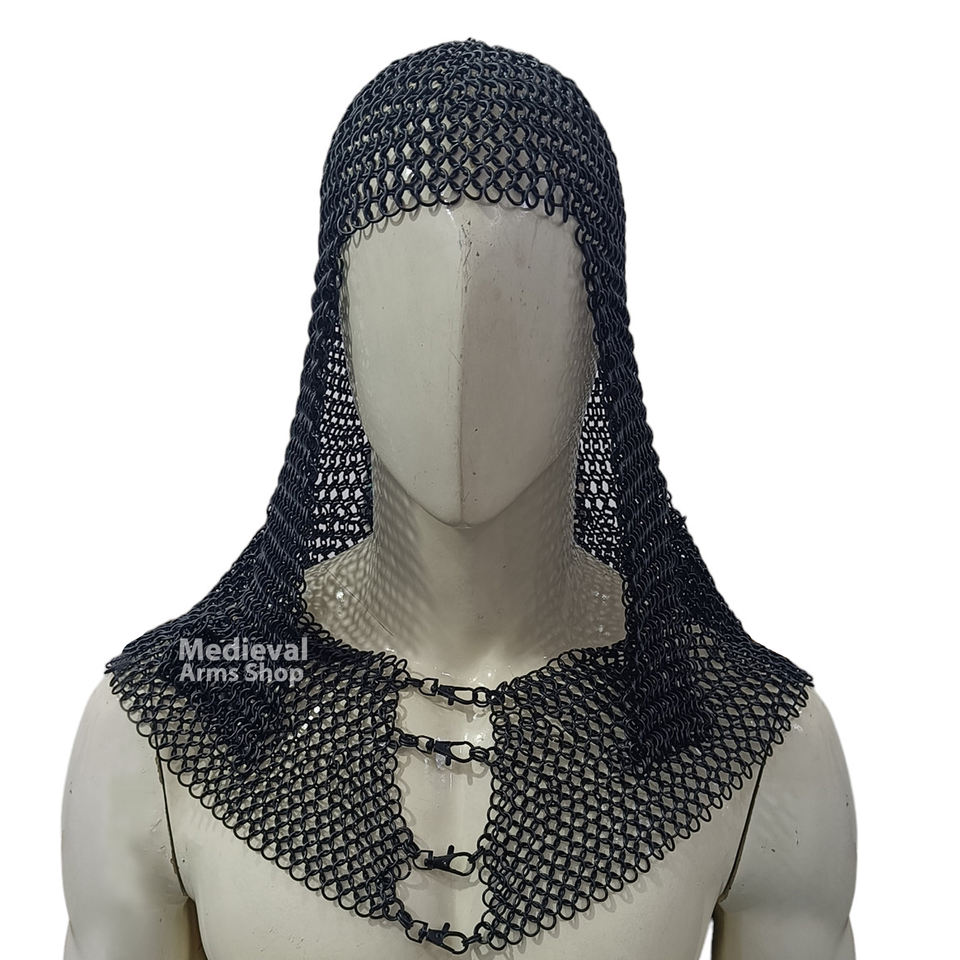 Capucha de Cota de Malla Medieval Hecha a Mano con Apertura Frontal, de Acero Suave con Anillos Empalmados, Armadura de Caballero para Protección de Cabeza y Cuello en Disfraces de Reenactamiento