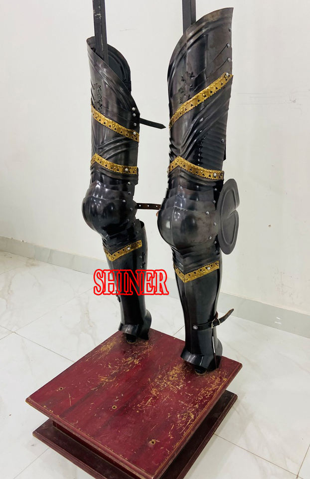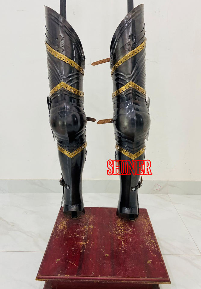 Armadura de pierna Medieval, protector de pierna completa, traje de armadura portátil de caballero, protector de pierna negro, armadura funcional para Halloween