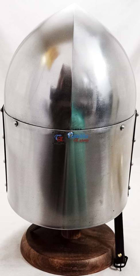 Casco de cabeza completa con Cruz de acero inoxidable hecho a mano moderno medieval con Base de madera disfraz de Halloween hombres arte coleccionable