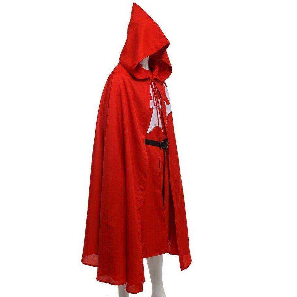 Capa de Caballero Templario Rojo Medieval Bordada, Túnica con Capucha de Algodón de Alta Calidad, Conjunto de Capa para Representación Histórica Renacentista y Halloween