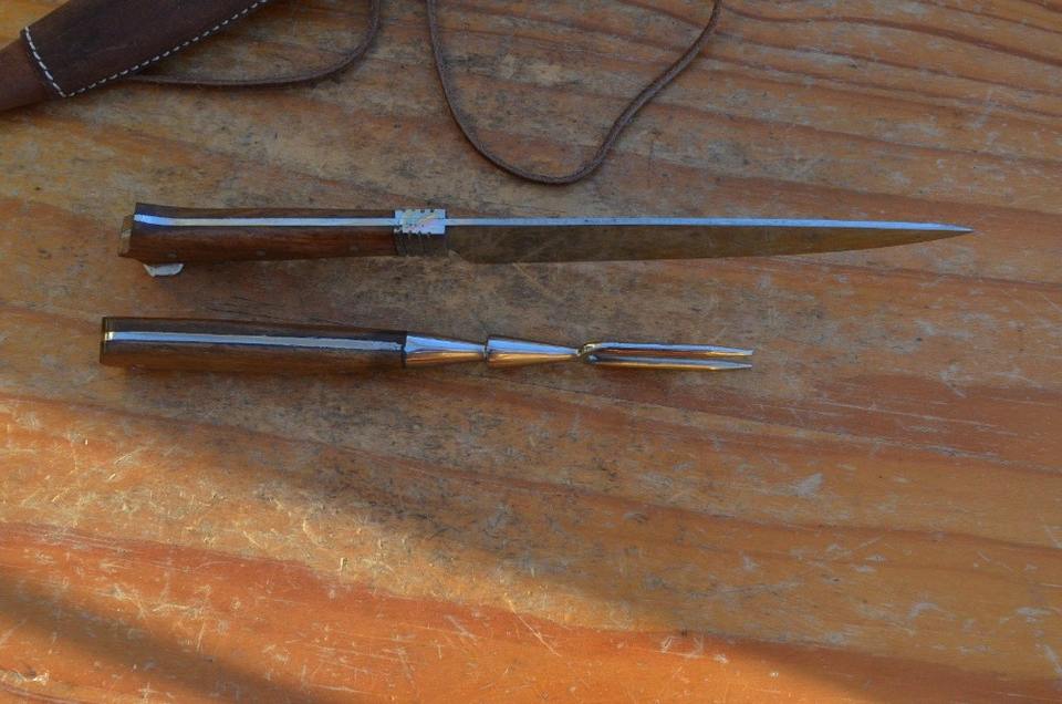 Juego de cuchillos y tenedores de cocina de acero inoxidable medieval.