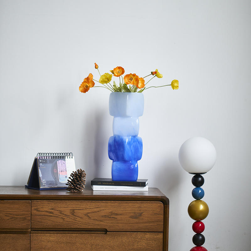 Jarrón Cuadrado Geométrico de Color Degradado Estilo Medieval, Decoración Suave para Mesa de Comedor, Decoración de Mostrador de Hotel, Jarrón de Vidrio