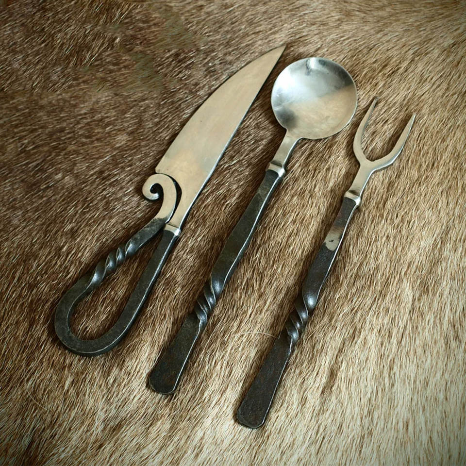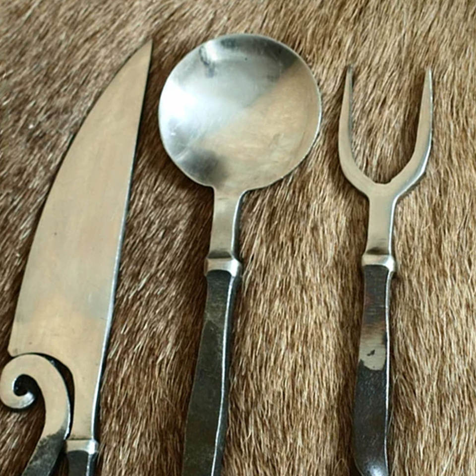 Nombre del Producto:Juego de cubiertos vikingos medievales forjados a mano