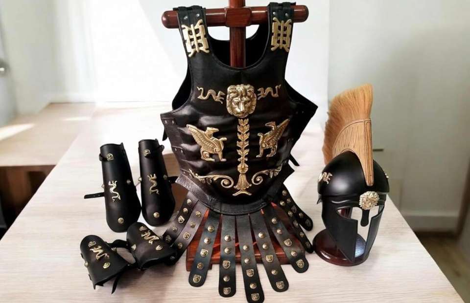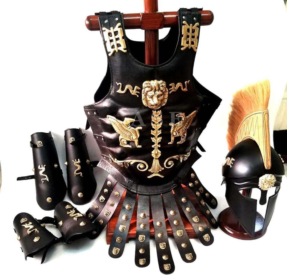 Material:Iron Helmet, Leather Breastplate & Bracers, Wooden Stand