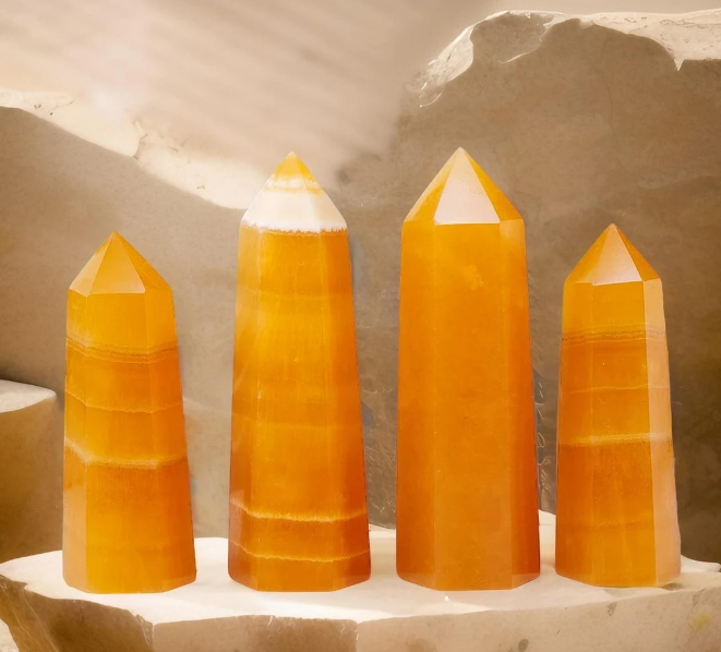 Natural Yellow Calcite Hexagonal Crystal Wand Tower