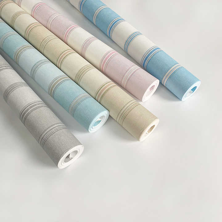 Papel tapiz de rayas 3D de Color sólido mediterráneo, dormitorio cálido, habitación de niños, Fondo de estudio, pared, papel tapiz Simple