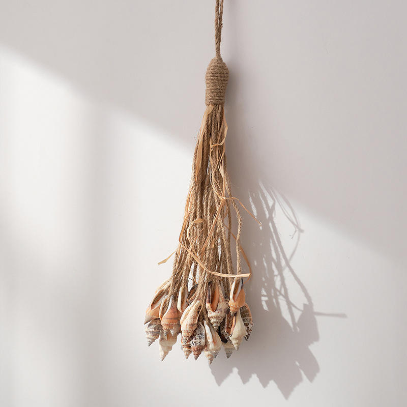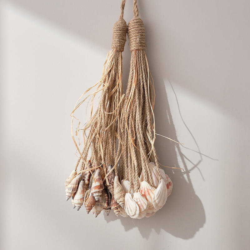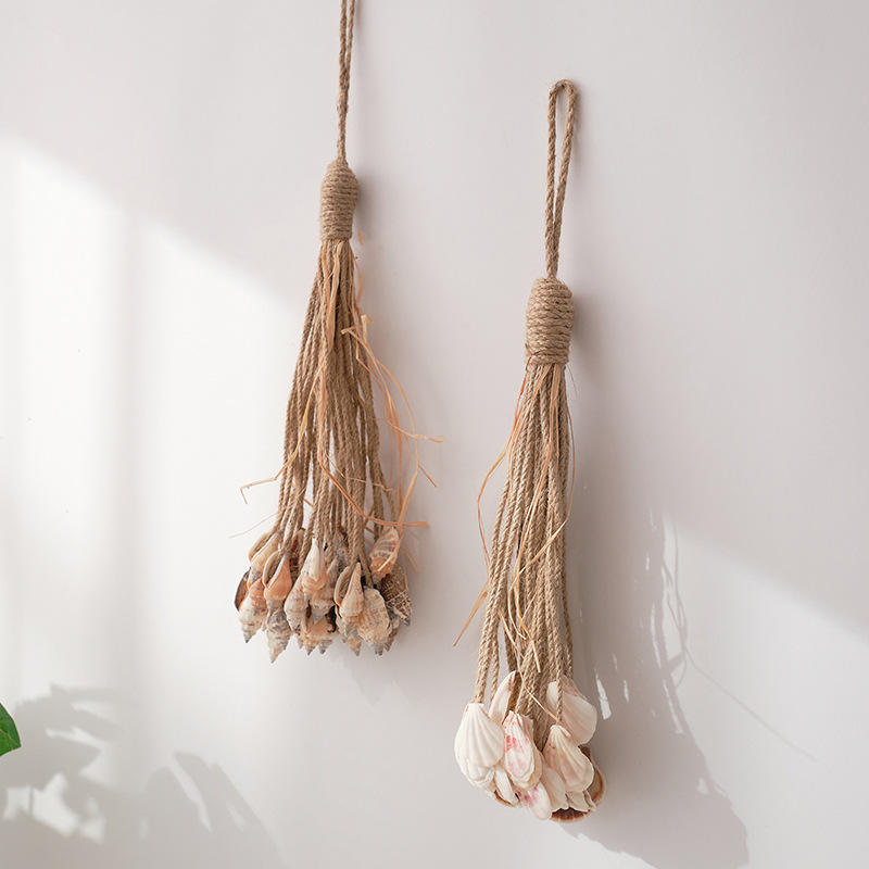 Decoración de Pared de Estilo Mediterráneo con Cuerda de Cáñamo, Conchas Marinas y Borlas, Decoración para el Hogar, Dormitorio, Balcón, Decoración para Exteriores