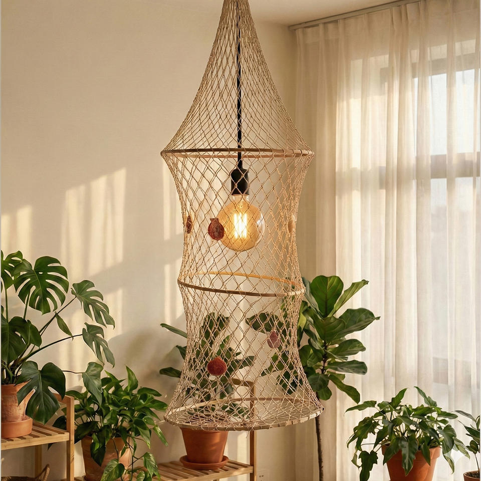 Jaula para Peces Colgante de Cuerda Estilo Mediterráneo, Color Blanco Irregular, Decoración para el Hogar, Accesorio para Fiestas de Cumpleaños al Aire Libre