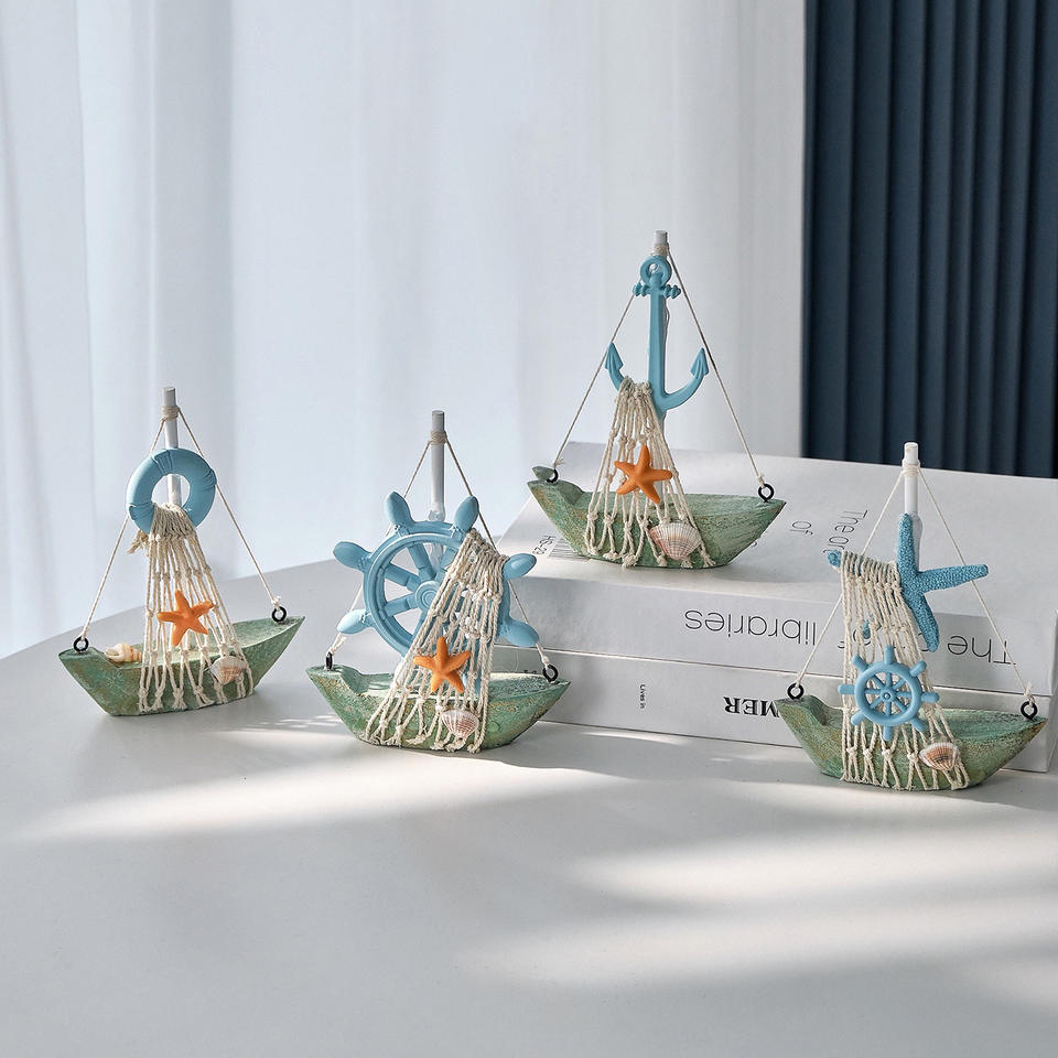 Decoración de velero estilo mediterráneo, juego de 4 piezas con ancla, estrella de mar y salvavidas para la decoración del hogar y la sala de estar