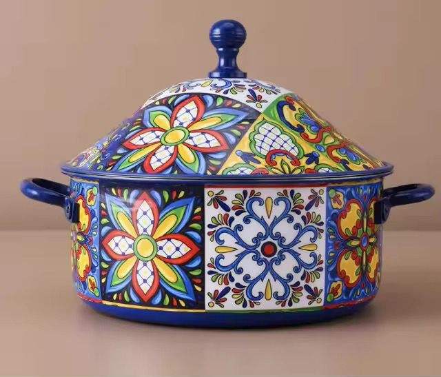 Olla para Calentar Comida con Diseño de Azulejos Mediterráneos, Olla de Servir Aislada de Lujo, Decoración de Mesa para Ramadán, para Dulces y Frutos Secos