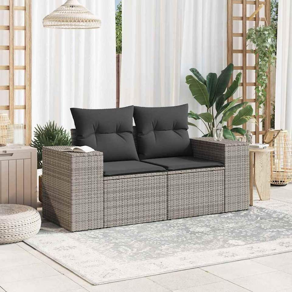 Sofá de Jardín de Ratán PE Gris con Patas Ajustables Medianas, Muebles de Exterior Cómodos y Elegantes