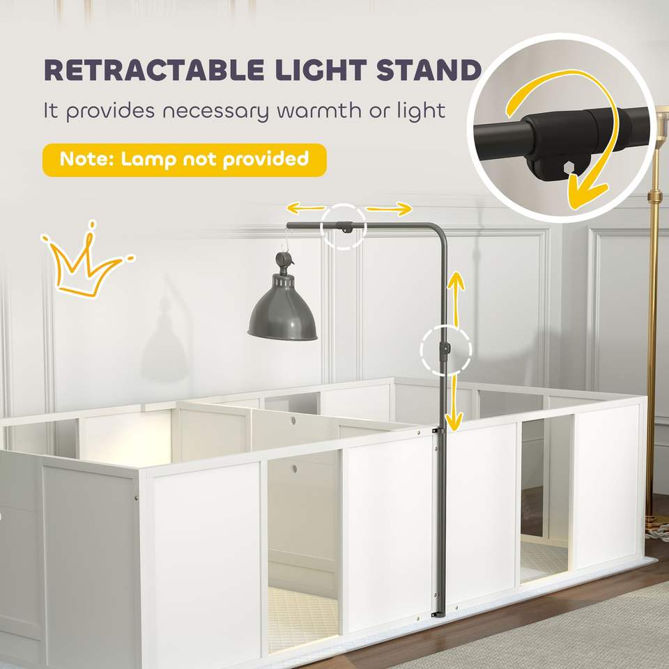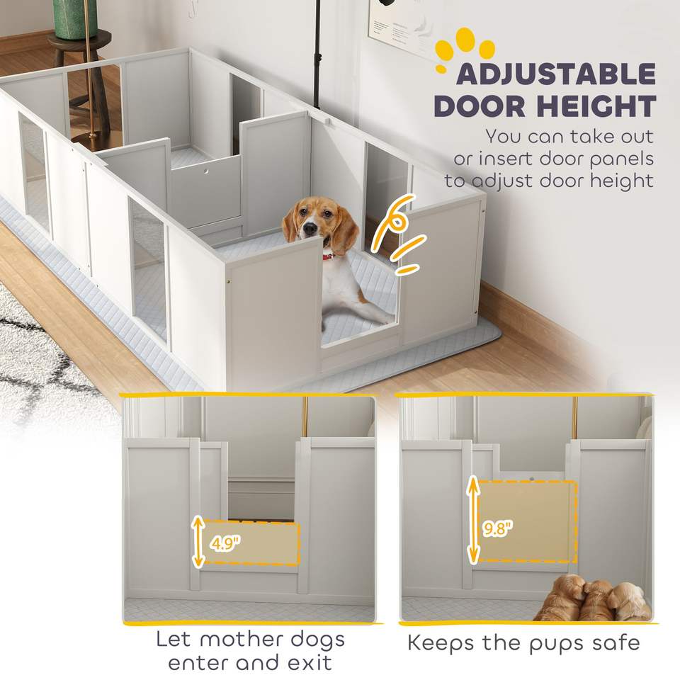 Caja de Parto para Perros de Raza Mediana con Soporte de Luz Retráctil, Almohadilla Impermeable para Orina, Puerta de Altura Ajustable y Dispositivo de Monitoreo Veterinario