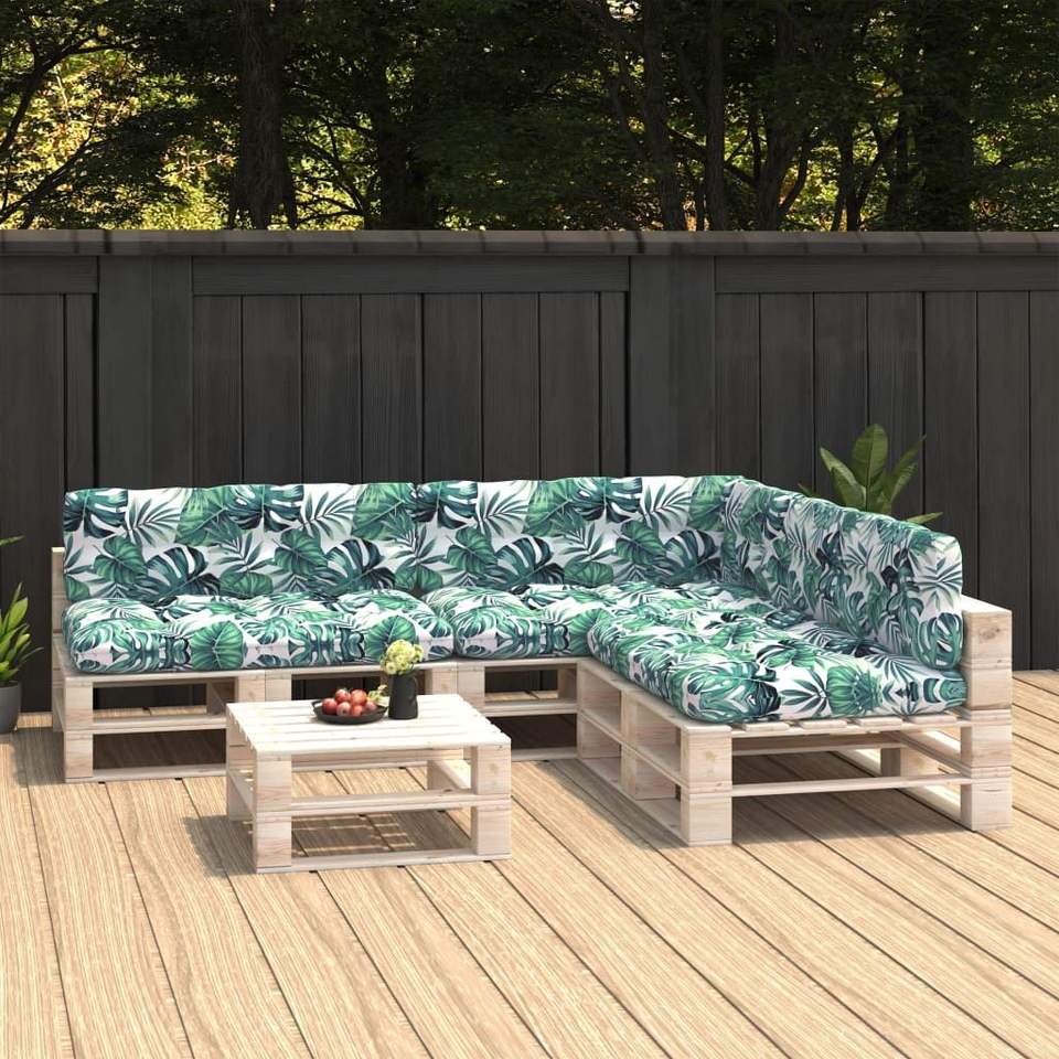 Juego de 7 Cojines para Sofás de Jardín, Tela con Patrón de Hojas Medianas (100% Poliéster)
