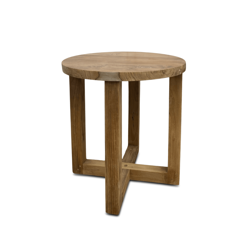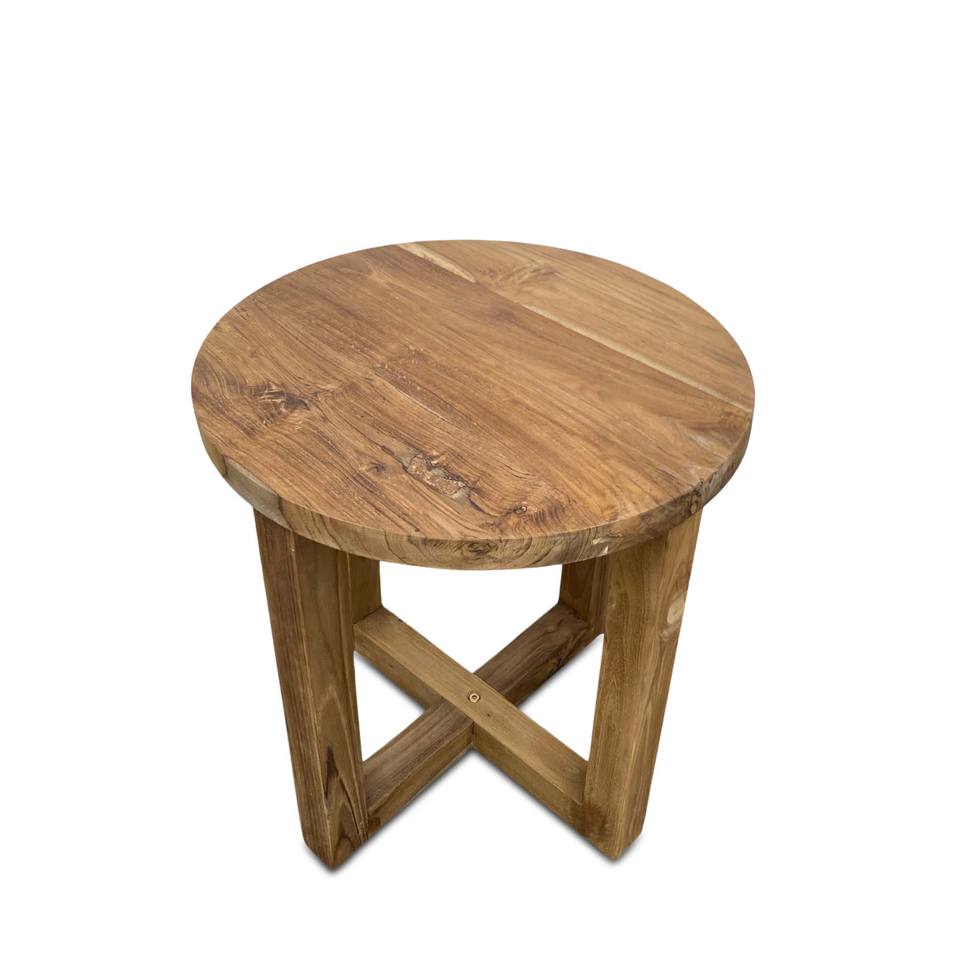 Mesa de Centro Redonda Mediana de Madera de Teca, Plegable e Inflable, Diseño Moderno Minimalista Ecológico para Sala de Estar