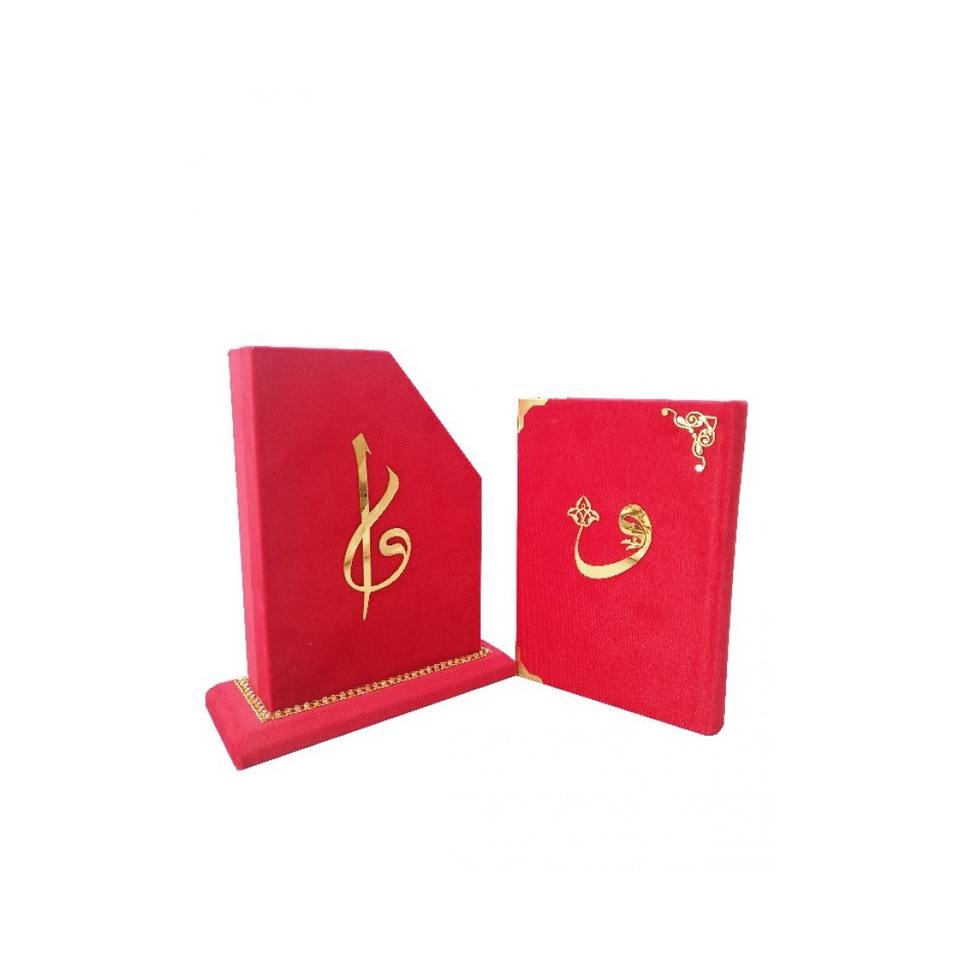 Corán Sagrado en Caja de Terciopelo Sellable de Tamaño Mediano - 295, Cubierta Roja con Caja de 24x28 cm y Papel Interior Rojo y Negro