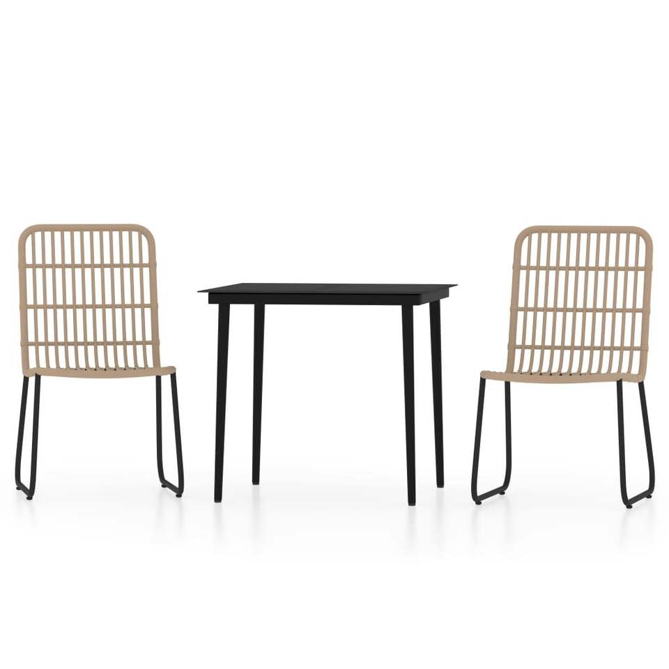 Conjunto de Comedor Apilable Mediano, Mesa y Sillas de Jardín de Roble y Ratán PE Negro