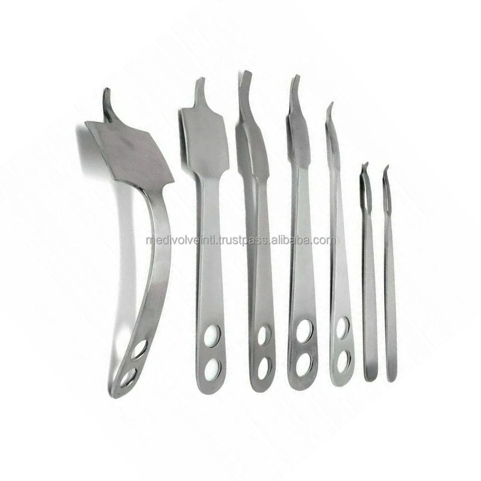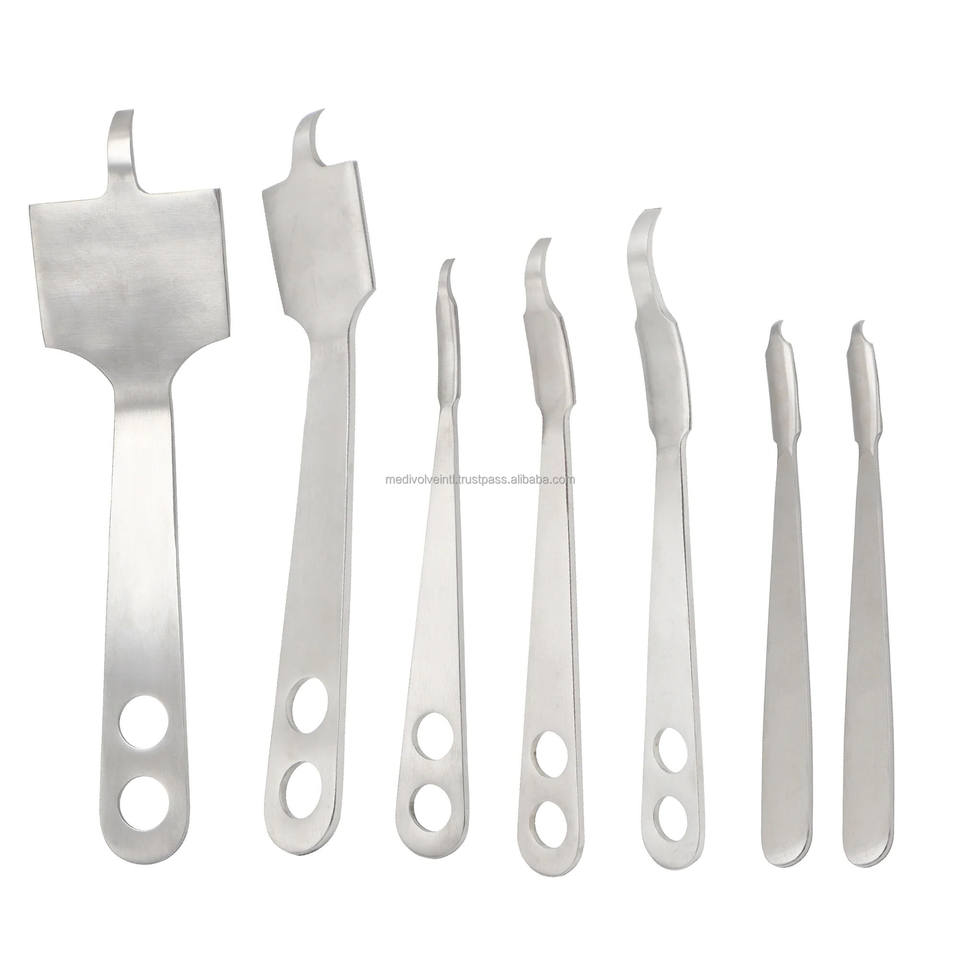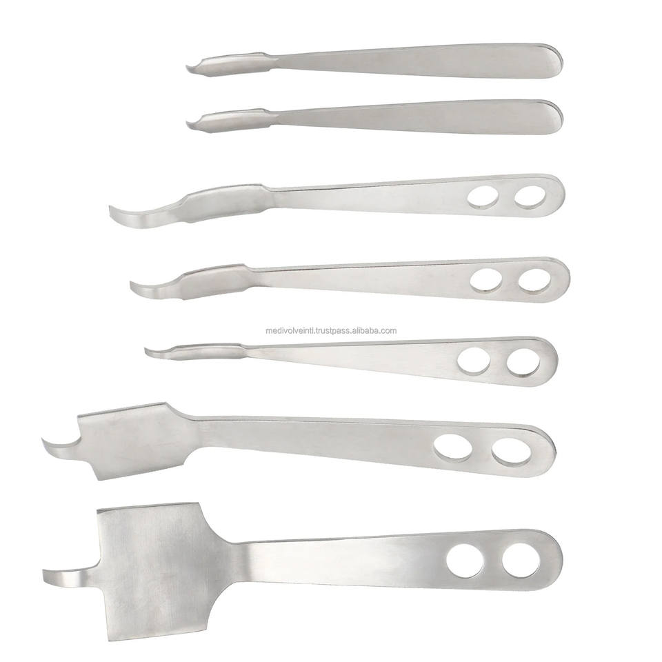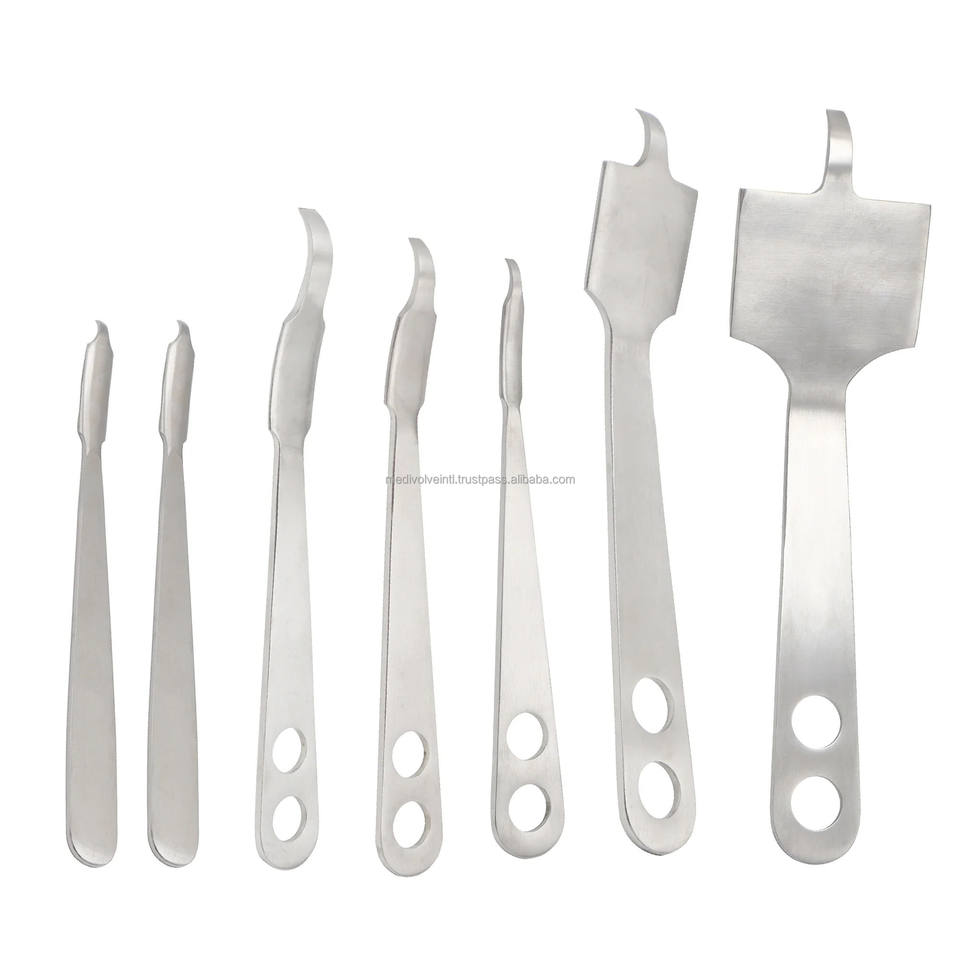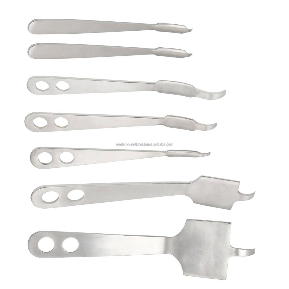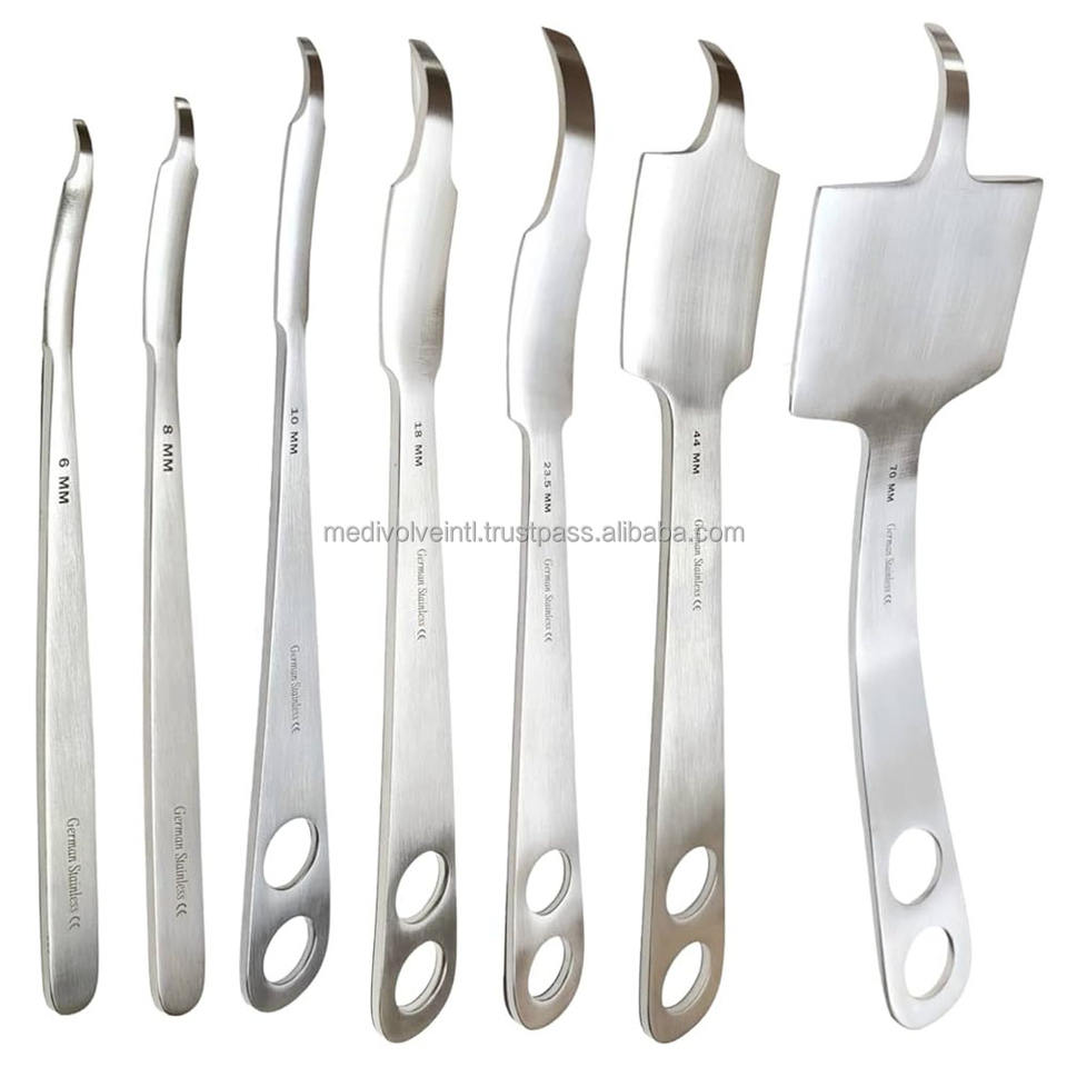 Especificación:Retractores de acero inoxidable alemán Juego de instrumentos quirúrgicos ortopédicos 7 piezas retractores de precisión Instrumentos reutilizables de grado médico Juego de retractores ortopédicos personalizado