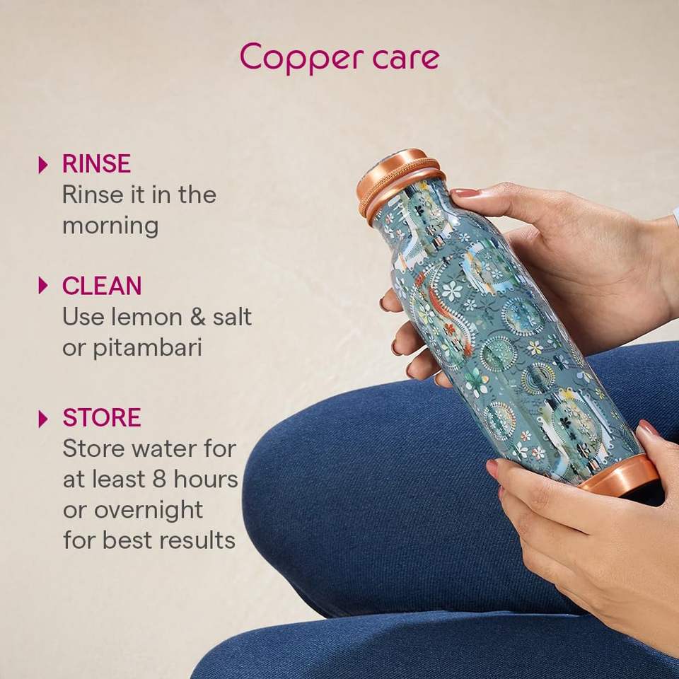 Botella de Agua de Cobre Puro Meena Artwork, Diseño de Botella de Cobre de Diseño, Botella Ayurvédica de Cobre con Estampado de Mandala