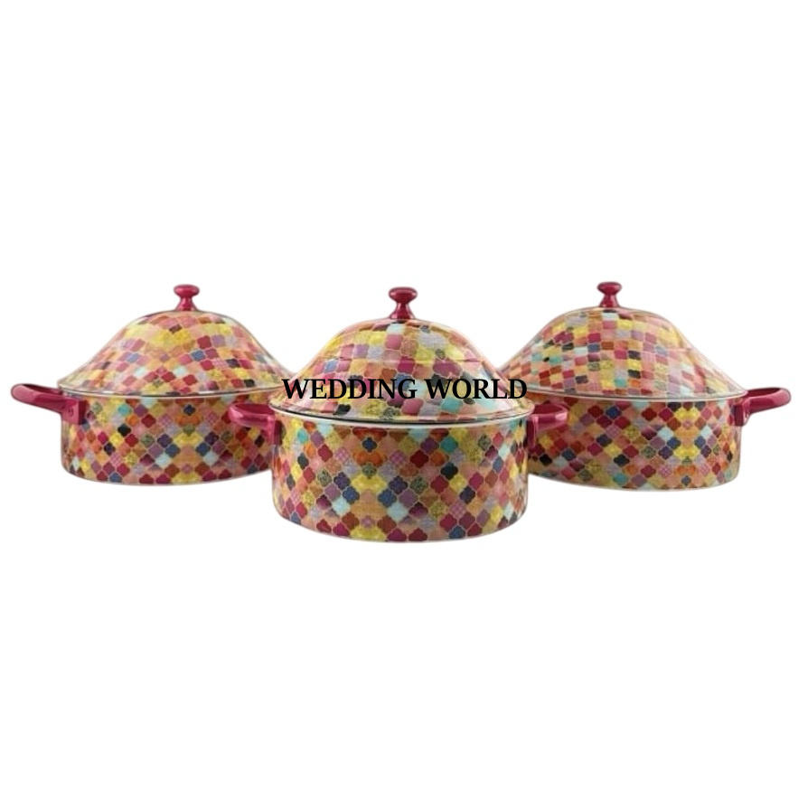 Meena Sticker Design Hotpot de acero inoxidable Última nueva colección Fancy Food Warmer Última llegada Cazuela de metal de lujo
