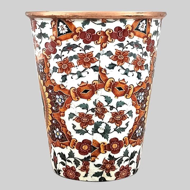 Botella de Agua de Cobre con Estampado Meenakari de 1 Litro con Diseño de Adhesivo, Botella de Cobre Ayurvédica con Impresión de Arte Meena