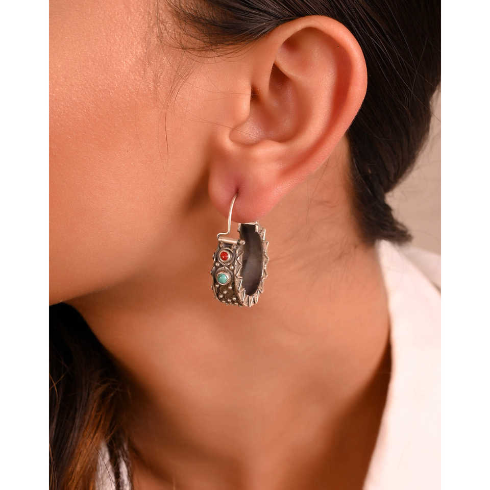 Pendientes de Aro Finos Meera Jaipur Veda en Tono Plateado