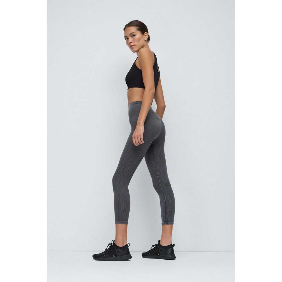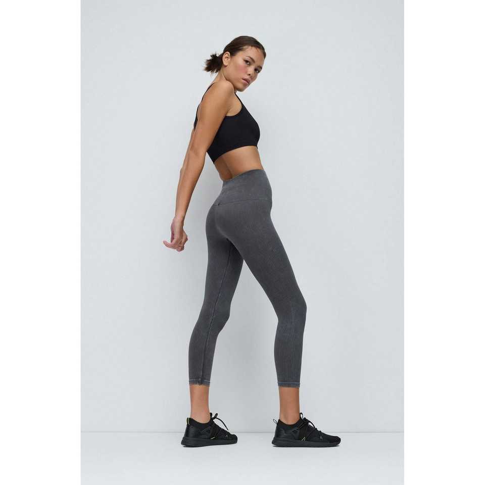 Leggings Deportivos Mega Merchant Charcoal de Cintura Alta, Acanalados, de Chifón, Estilo Casual con Comodidad Elástica para Todas las Temporadas