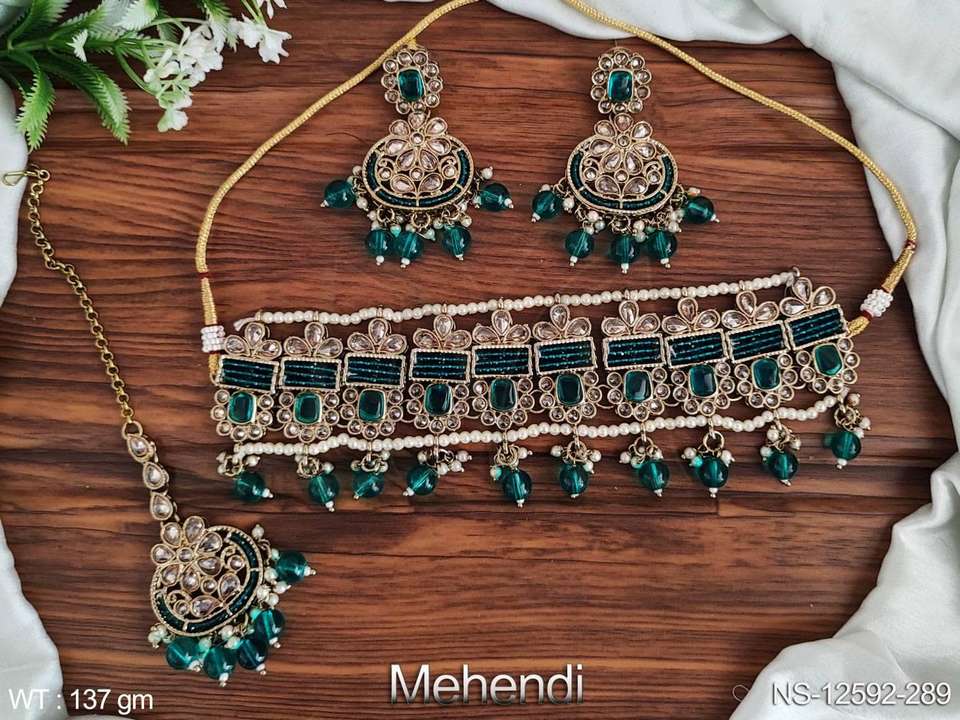 Mehendi-conjunto de collar y gargantilla, joyería antigua, diseño Mehendi, ropa nupcial, hermoso diseñador