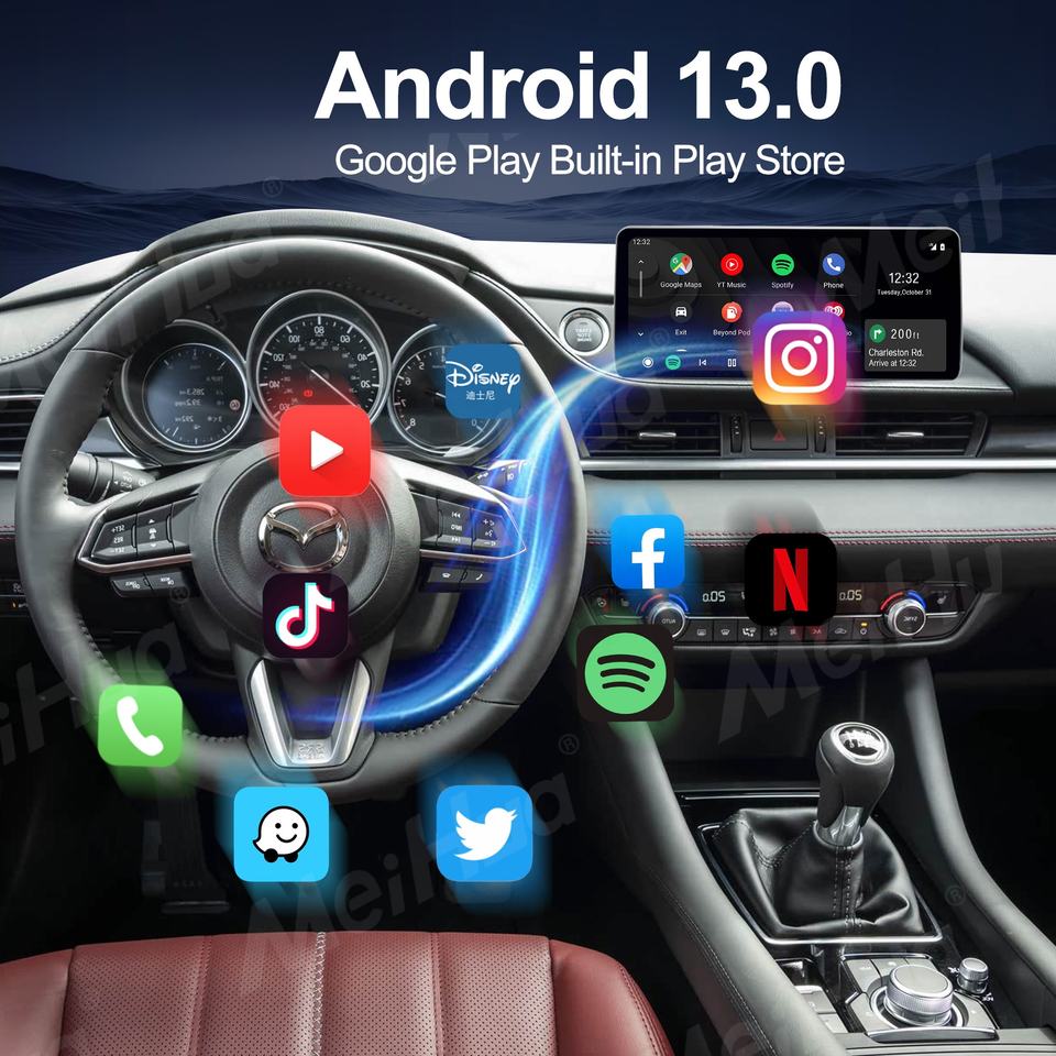 Meihua 12,3 pulgadas Android estéreo reproductor Multimedia pantalla táctil Radio de coche para Mazda 6 2019-2023 2Din Autoradio GPS Navi