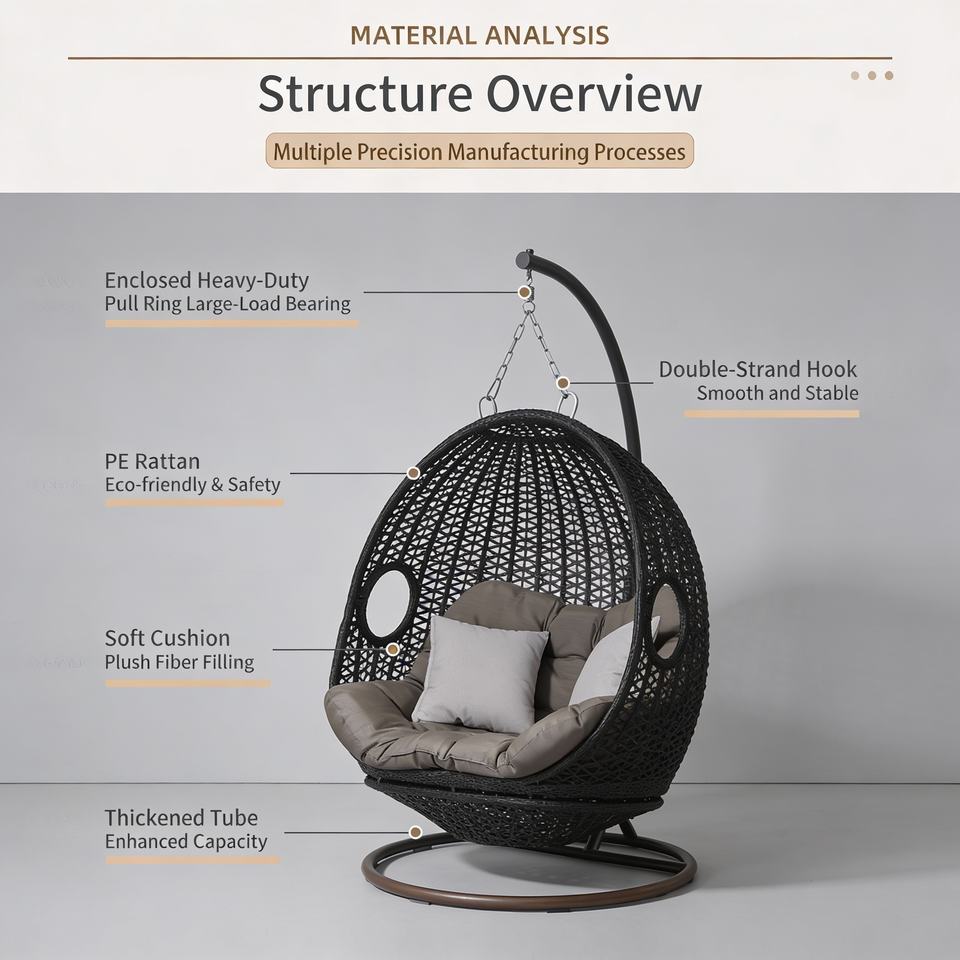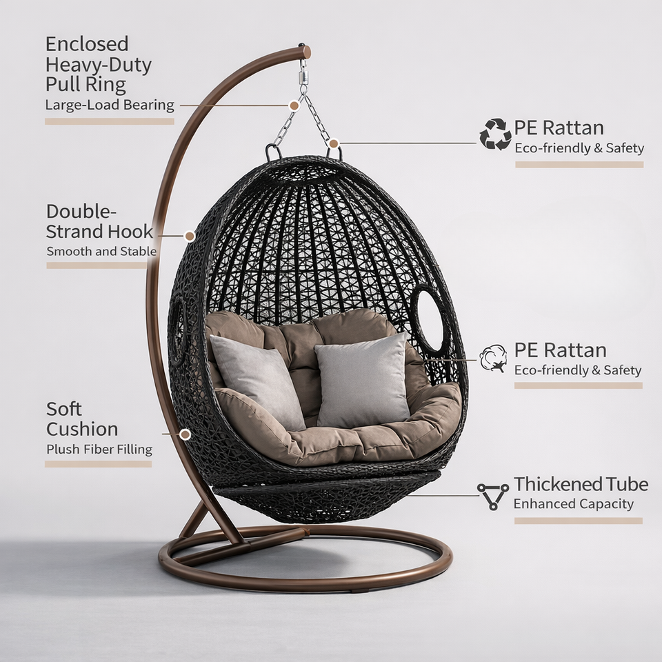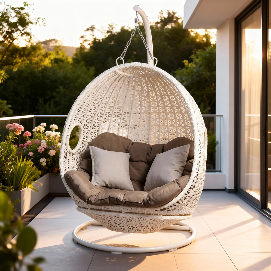 Silla Colgante Doble Moderna de Ratán Meiqi y Hamaca Tipo Nido de Huevo para Uso en Interiores/Exteriores, Dormitorio, Balcón, Patio, Ocio
