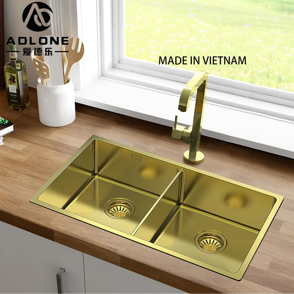 Fregadero de cocina de dos cuencos Meiyu, acero inoxidable SS304, forma Rectangular, instalación bajo montaje, superficie dorada, espesor de calibre 18/16