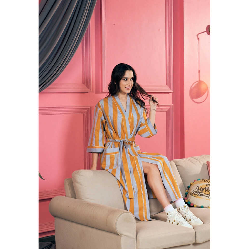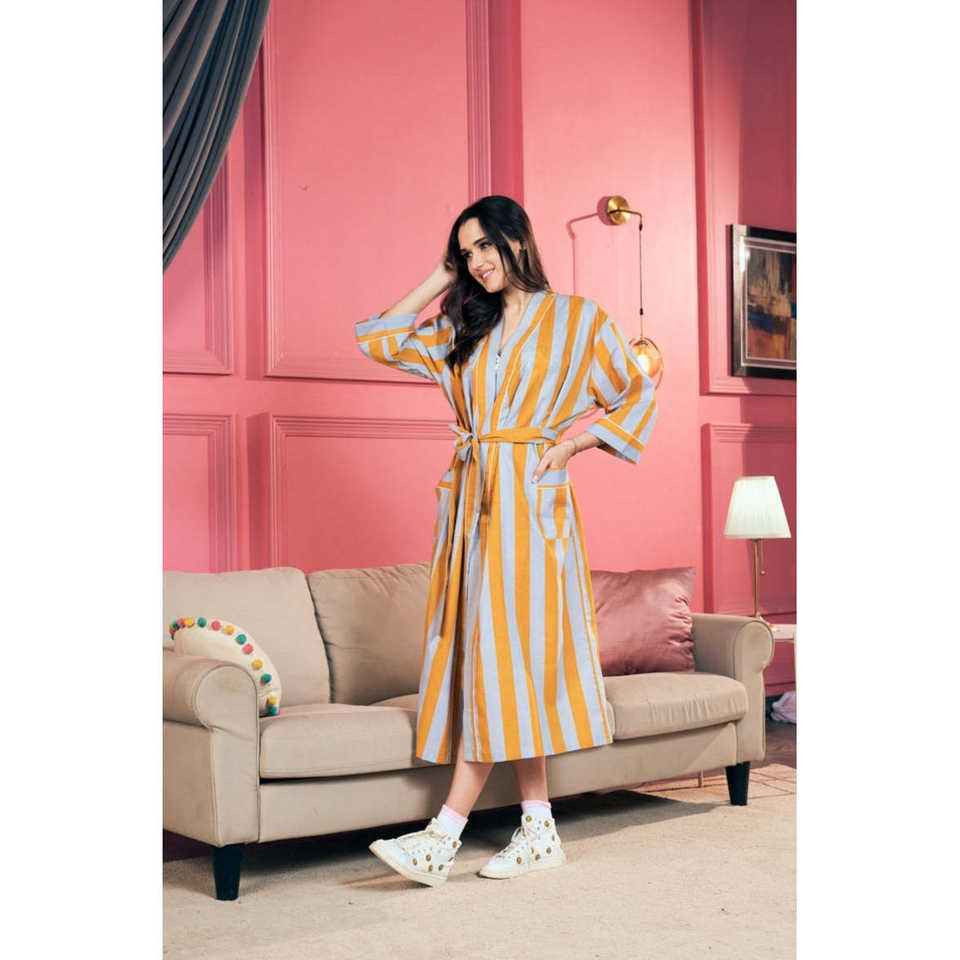 Bata de Playa Mellow Yellow 100% Algodón Cambric 60x60 con Manga Murciélago y Cuello en V, Ajuste Holgado
