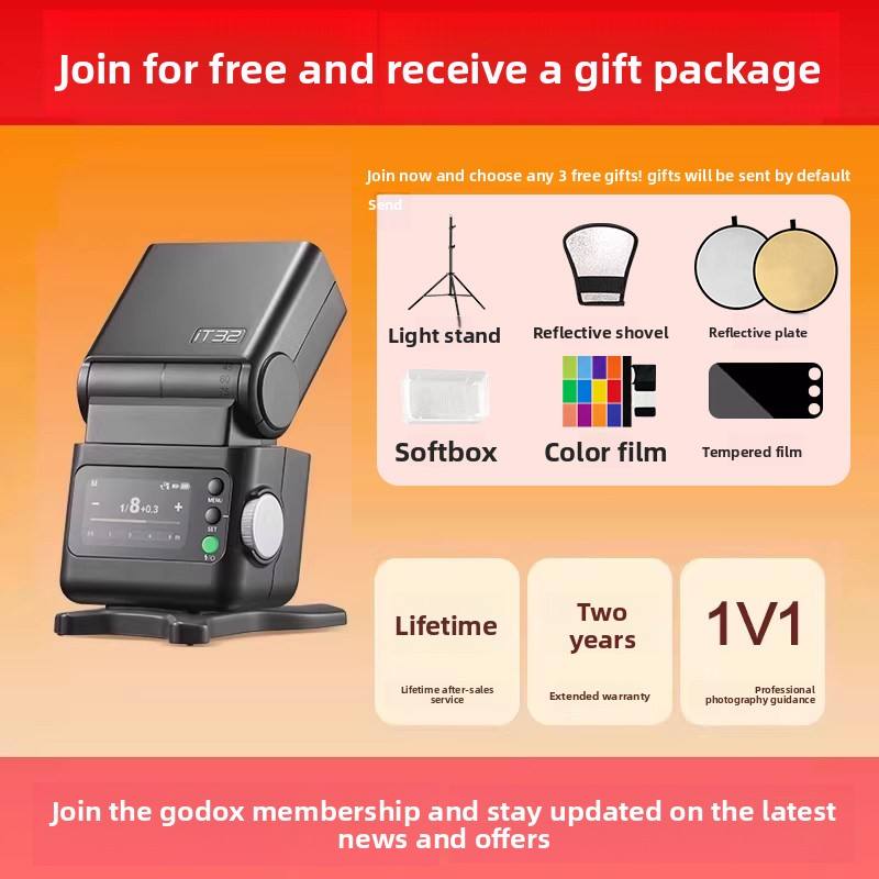 [Beneficio para Miembros] Flash para Cámara Godox It32 para //Fuji//- Compacto, Portátil, TTL, con Medición Automática
