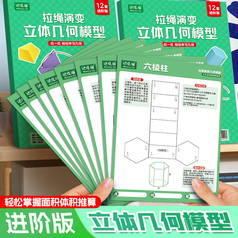Kit de Modelos de Geometría Sólida Memory Cat, 12 Conjuntos, Juguete Educativo de Transformación con Cuerda para Jalar, para Niños de 7 a 14 Años, Unisex, Ciencia