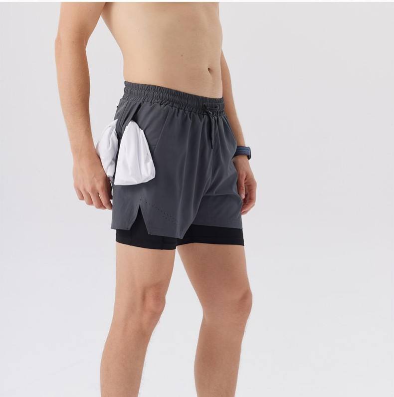Pantalones cortos deportivos 2 en 1 de secado rápido para hombre, pantalones cortos para correr maratón con logotipo personalizado, pantalones cortos de entrenamiento físico transpirables sueltos, envío DDP