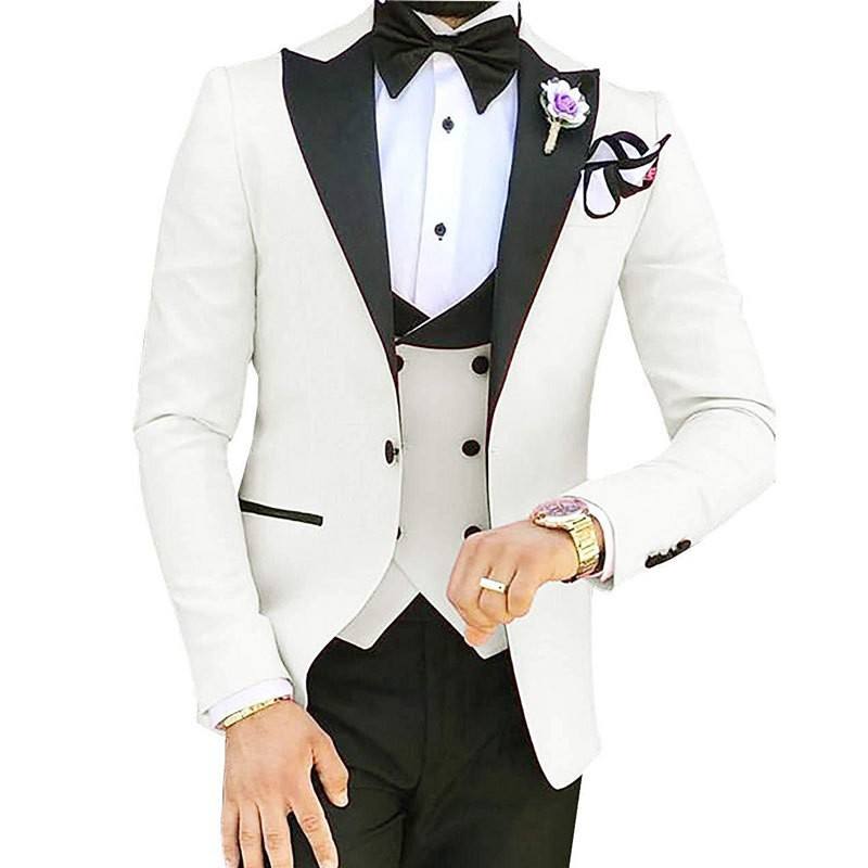 Trajes de 3 Piezas para Hombre, Hechos a Medida, Trajes de Novio y Padrinos de Boda, Traje Masculino (Chaqueta+Pantalón+Chaleco)