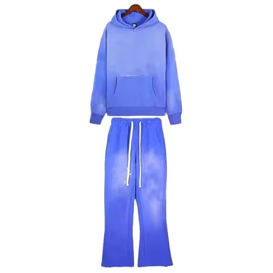 Conjunto Deportivo para Hombre con Lavado Ácido, Pantalones Acampanados, Sudadera con Capucha, Ropa Urbana, Impresión Personalizada de Ropa, Lavado Ácido, Pantalones Acampanados
