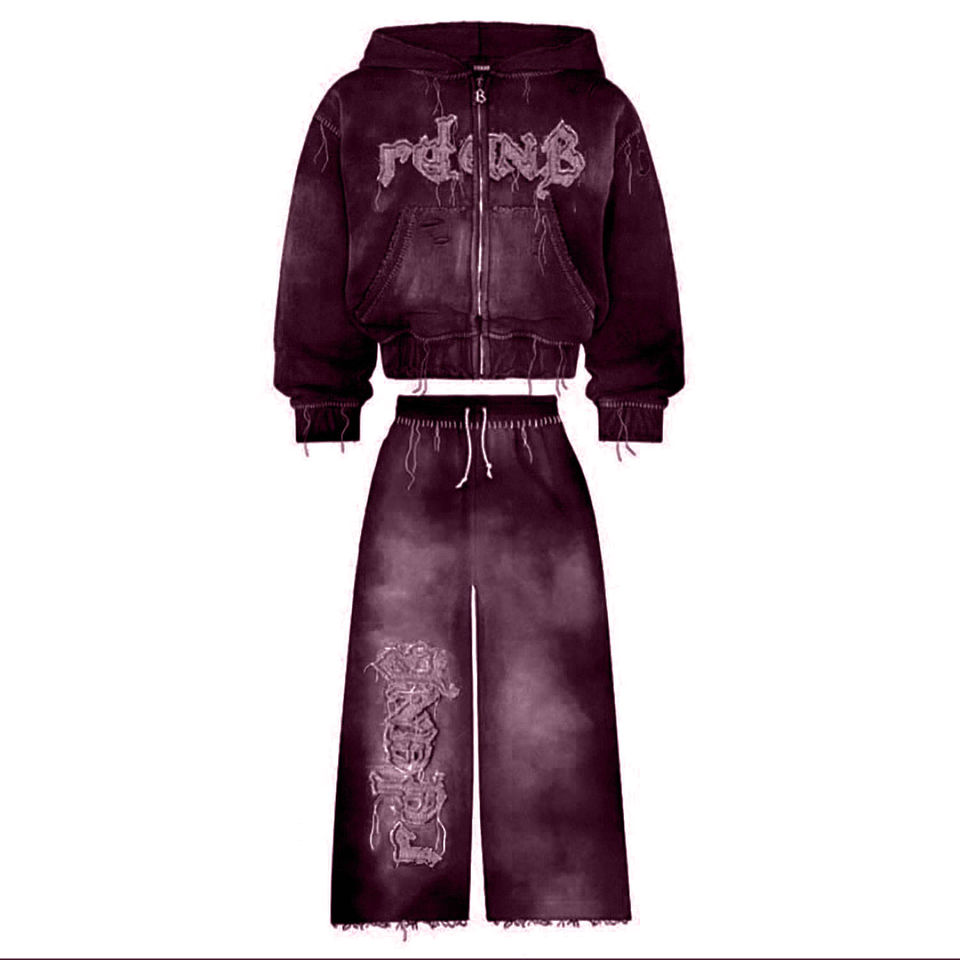 Chándales para Hombre con Lavado Ácido, Logotipo Bordado y Cremallera, 100% Algodón Felpa, Color Sólido, Hombros Caídos, Estilo Desgastado