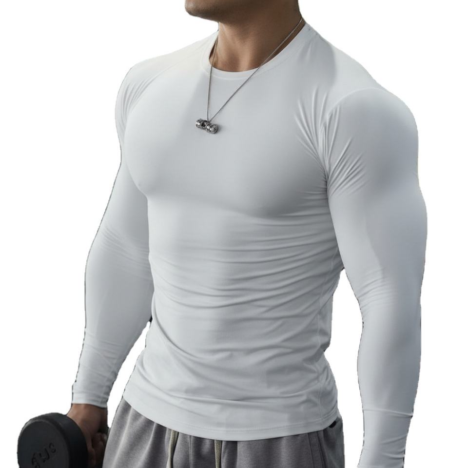 Camisas de Compresión de Manga Larga para Hombre, Estilo Informal, sin Cuello, para Entrenamiento, Ecológicas, Transpirables, con Costuras Abiertas