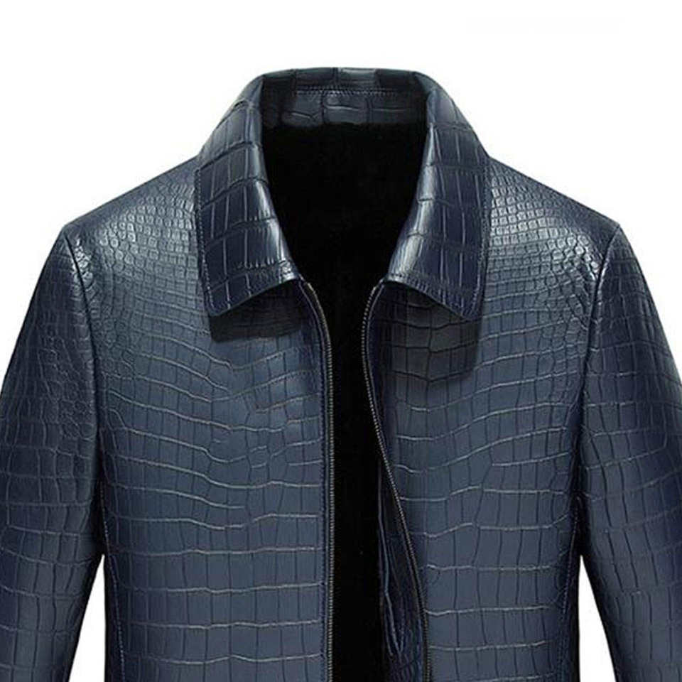 Chaqueta de Cuero para Hombre, Diseño de Cocodrilo Negro, Chaqueta de Cuero Genuino, Corte Entallado, Chaqueta Casual de Lujo, Logotipo Personalizado OEM, Venta al Por Mayor