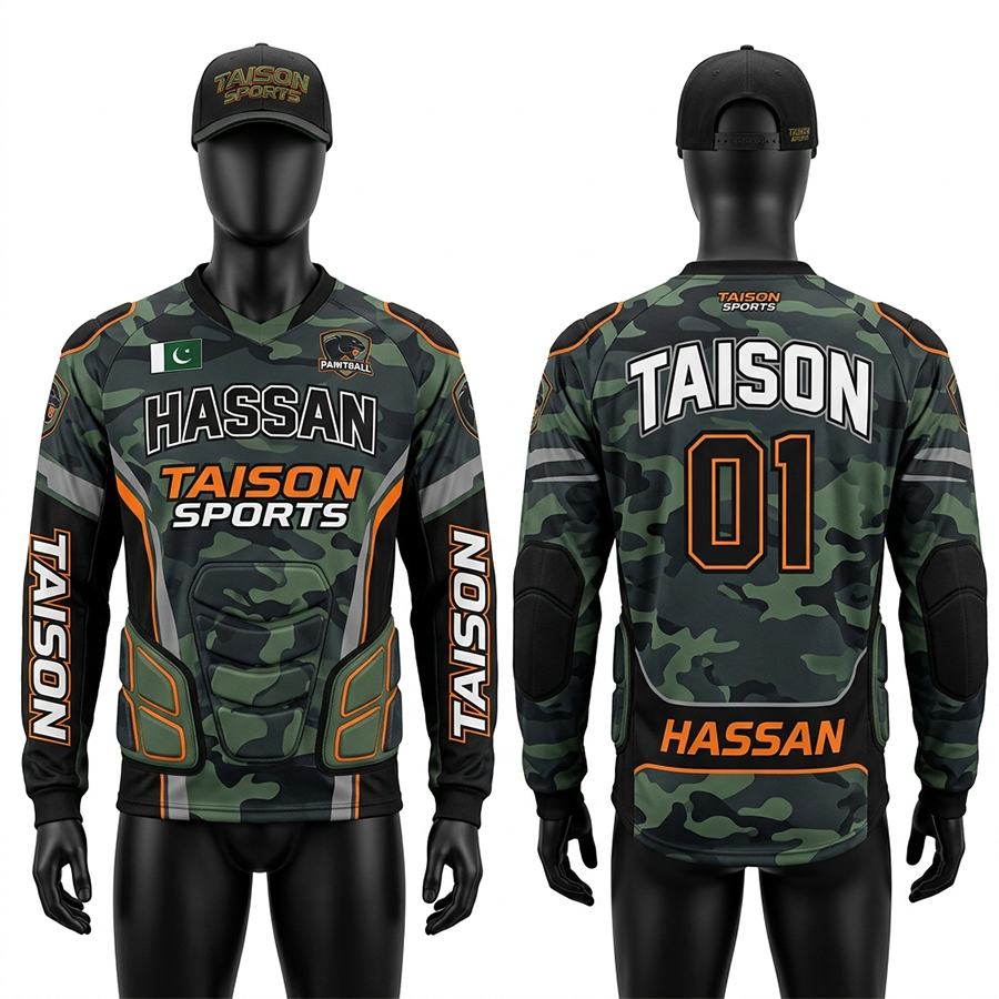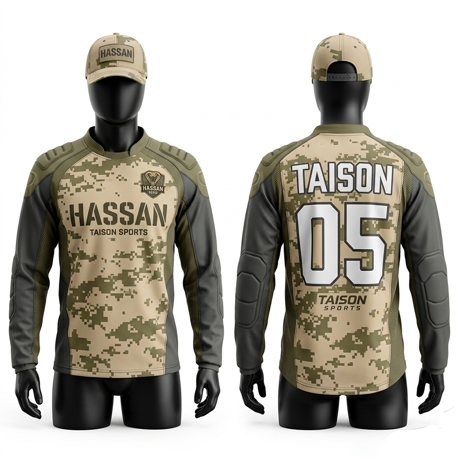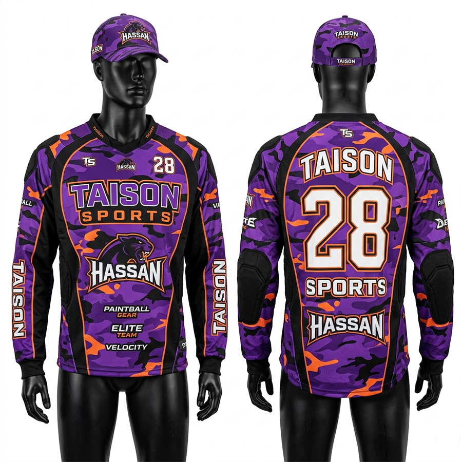 Camiseta de paintball para hombre, transpirable, de poliéster, con paneles de camuflaje en rosa, negro y verde neón, personalizada con sublimación para equipos.